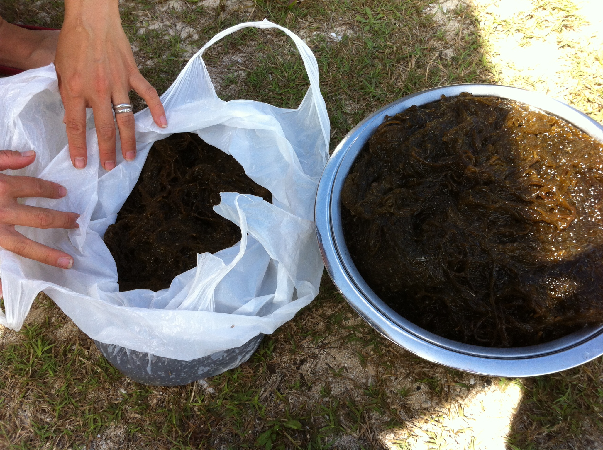 人生初のもずく採り〜!